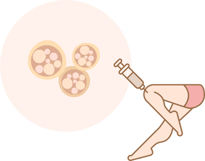 (培養幹細胞治療)脂肪組織から間葉系幹細胞を分離して、数千万~1億個ほどまで培養し、注射により静脈投与または局所投与を行います。痛んだ軟骨が再生されることで、痛みや炎症などが減少し、根本的な膝痛が改善される効果が期待できます。