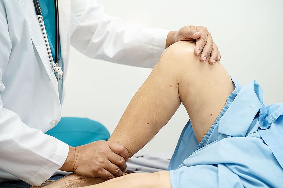 変形性膝関節症の診断の際には、X線(レントゲン)検査をする大事なポイントは、寝た状態で撮影するのではなく、立って膝に体重がかかった状態で撮影することです。寝た状態では、膝の軟骨の間に隙間が広がって、軟骨のすり減り具合を正確に判断できないからです。また、X線でわかるのは主に骨の状態で、軟骨や筋肉、半月板などは損傷していてもX線(レントゲン)では映されないのでわかりません。